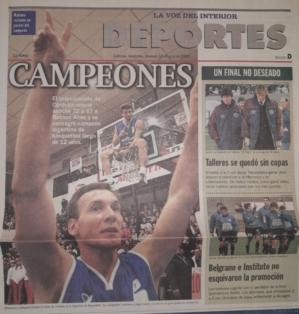 Continuamos el Camino al Centenario recordando uno de los momentos más importantes de nuestra historia reciente. En el mes julio del año 2000, en la Ciudad de San Francisco, la FBPC organizó el 66º Torneo Argentino de Mayores Masculino. De esta histórica edición participaron enormes figuras del básquet nacional y el seleccionado de Córdoba, con Campana y Milanesio, obtuvo su octavo título tras vencer en la final a Buenos Aires (72-67)
