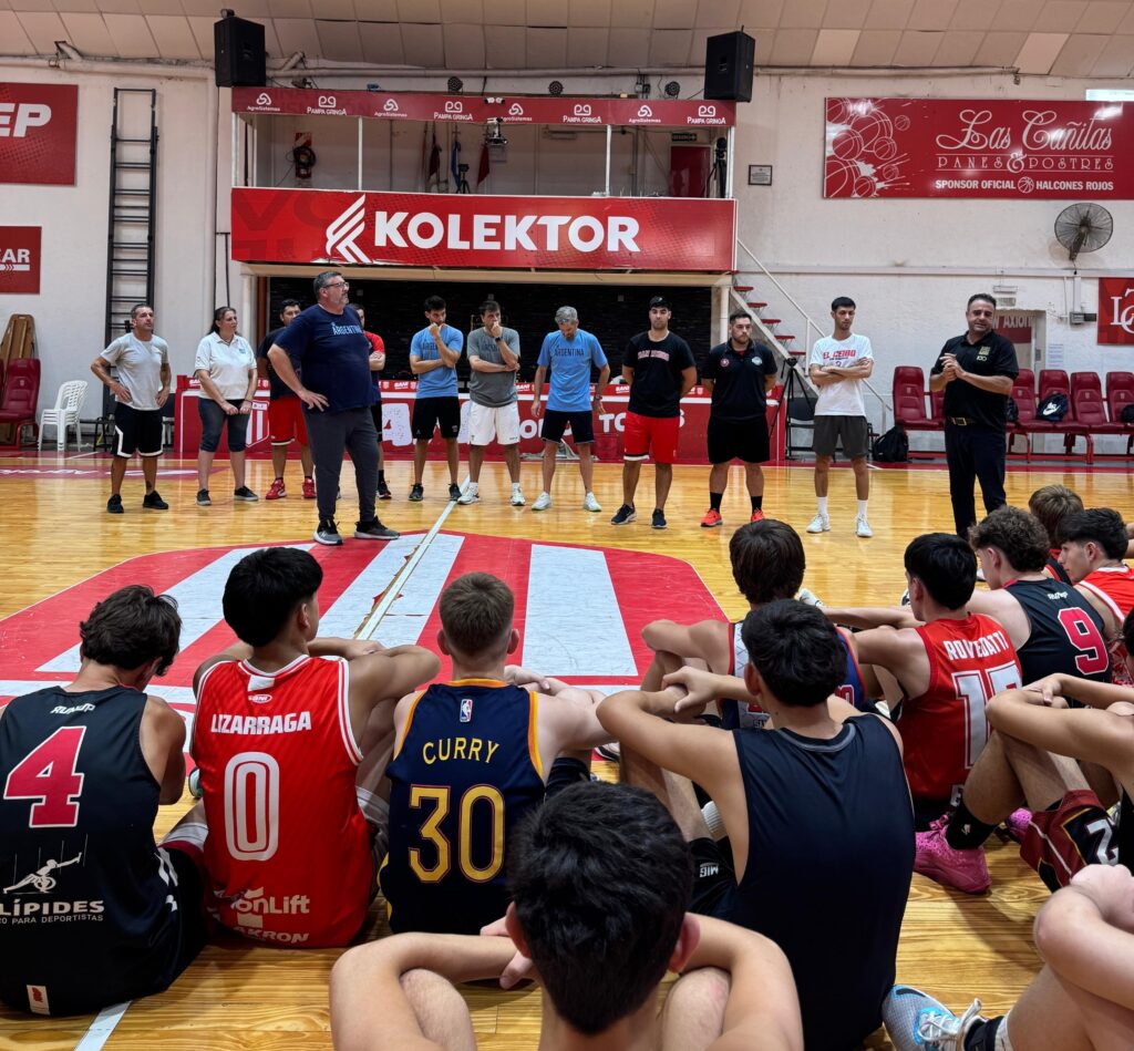 HERNÁN TETTAMANTI (Director de Selecciones Formativas) Y SEBASTIÁN RODRÍGUEZ (Director de Mini Básquet) JUNTO A ENTRENADORES/AS EN SAN FRANCISCO