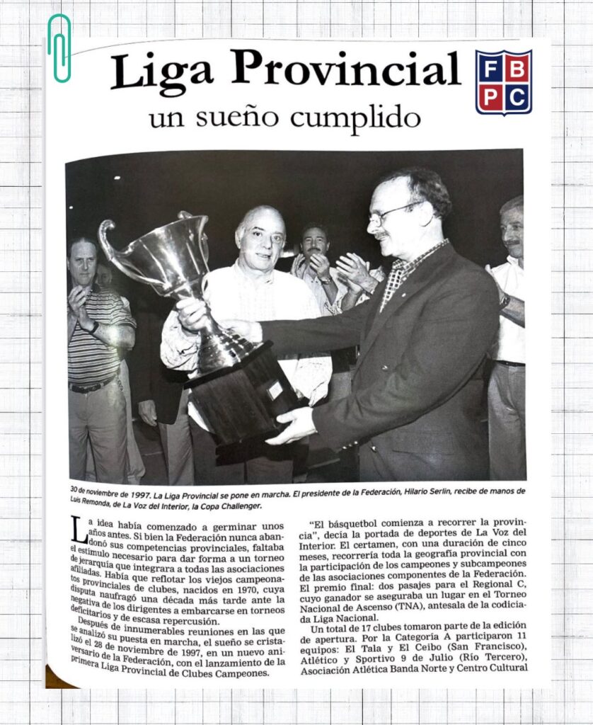 🔙El entonces presidente de la FBPC, Hilario Serlin, inauguraba este torneo con la participación de 17 clubes de la Provincia de Córdoba. En esa primera edición, Universitario de Cba se consagraba campeón.