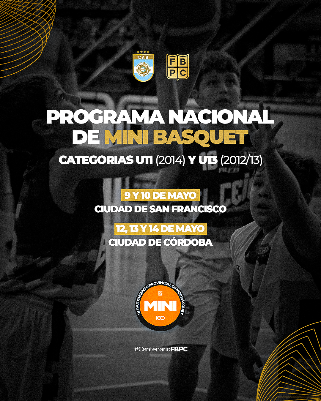 La Confederación Argentina de Básquet anunció que su Programa Nacional de Minibásquet vendrá este finde a la Provincia de Córdoba. Te contamos todos los detalles de la actividad para las categorías U11 y U13, que se realizará del 9 al 14 de mayo en las ciudades de San Francisco y Córdoba.